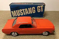 Apparently that next step was being developed during late 1965 and early 1966. Wen-Mac was purchased by Testors in 1966 and, in the April 1966 issue of Car Model magazine, coverage of the February 1966 Hobby Industry Trade show in Chicago included the Testors model company announcement of a radio-controlled, electric powered version of what was apparently the same basic 16” 1966 Mustang GT. It was mistakenly called a 1:9 scale model when actually, a 16" long 1966 Mustang is 1:11 scale.[20][21]