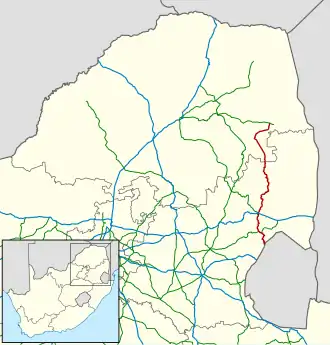 The R40 is a provincial route in South Africa that connects the Eswatini border at Bulembu via Barberton, Mbombela, Bushbuckridge, Acornhoek and Hoedspruit with Phalaborwa. The route spans two provinces and passes through several private game reserves.[1]