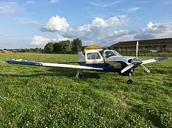 Piper Arrow aircraft at RAF Madley after engine failure, 1 August 2019