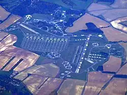 After being placed on a care and maintenance basis after the war, the station re-opened as the home of the 7531st Ammunition Squadron in September 1955.[8] During April 1995 the base was handed back to the RAF, only for it to be returned to USAF control.[9] In 2009 USAF staffing at Welford was reduced as part of USAF-wide budgetary adjustments.[10][11] The munitions base's function is described as "at its busiest when the US government deploys bombers to a forward air station at RAF Fairford".[12] The bombers at RAF Fairford can include B-1, B-2 and B-52.[13][14]