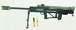 The RT-20 is a Croatian bullpup anti-materiel rifle developed by Metallic in Rijeka in the mid-1990s and marketed by RH-Alan.[1][2] The name itself is an acronym of the Croatian word Ručni Top 20, or "Hand Cannon 20mm". Operating with a bolt action, it houses a single 20mm round and must be reloaded after each shot. Given its large caliber, it is one of the most powerful anti-materiel rifles currently in use by any country and is comparable to the South African Denel NTW-20 and the Indian Vidhwansak.