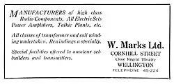 In 1929, Marks went into business for himself, opening a small shop in Cornhill St, Wellington, supplying basic radio parts and equipment, building amplifiers, rewinding transformers and other related activities.[3]