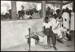 On 4 October 1973, ORTS which had been in talks with Radio Gambia about producing a joint radio programme based on Senegambian history and broadcast in the local languages came to an agreement, and the first ever recording of the programme Chossani Senegambia (the history of Senegambia) was made.[4] The Gambian team consisted of veteran broadcasters like Alhaji Alieu Ebrima Cham Joof (historian, former Director of Programmes and Head of Local Languages at Radio Gambia), Alhaji Assan Njie (Presenter of Radio Gambia), Alhaji Mansour Njie (historian and Presenter of Radio Gambia, later Presenter of Gambia Radio & Television Service (GRTS) and Alhaji Ousman Secka.[5][6] Alhaji Alieu Ebrima Cham Joof (Coordinator of the program for Radio Gambia) travelled to various parts of Senegal and the Gambia accompanied by his team of journalists including Cheickh Jallow, to interview the elders knowledgeable in Senegambian history.[7][8] The Senegalese team also went to the Gambia to gather materials. Their team included: Ebrima Mbenga (Coordinator of the program for ORTS), Dodou Diego Diop and Alioune Cissé. The programme was pre-recorded and it was scheduled by both Radio Stations to go live at the same time and date (Tuesdays), so that both Gambian and Senegalese listeners can listen to it at the same time.[9][10][11] On many occasions, prominent Senegalese historians made live appearances at Radio Gambia studios and vice versa.[12][13] The programme was generally accompanied by live music from prominent griots like Jali Nyama Suso, Alhaji Bai Konte (on Kora also griot), Alhaji Abdoulaye Samba (or Abdulai Samba, on Xalam also griot) and backing singers. Some of the prominent historians from Senegal that appeared on the programme included: El Hadji Demba Lamin Diouf, Modou Diouf (also known as Captain Modou Diouf - special appearance at Radio Gambia, 1979), El Hadji Mansour Gueye and Gorgi Makura Mboob. From the Gambia they included: Dodou Nying Koliyandeh, Jabell Samba, Alhaji Babou Samba, Alhaji Bamba Suso, Doctor Lamin Mbaye, Alhaji Momodou Lamin Bah and Alhaji Sait Camara.[14][15][16] The programme was a success in both Senegal and the Gambia, because no programme like that existed before in neither country.[17]