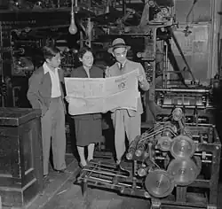 The paper ceased publication in 1942 due to the incarceration of Japanese Americans at President Franklin D. Roosevelt's order. It was revived in 1946, due to Akira Komai's foresight and the loyalty of his employees. Komai had arranged for the paper's rent to be paid during the war and hid the Japanese type under the floorboards.[2]