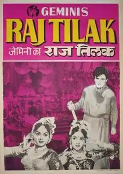 Raj Tilak (transl.Coronation) is a 1958 Indian Hindi-language Ruritanian romance epic film written by the Gemini Studios story department, consisting of K. J. Mahadevan, C. Srinivasan and Kothamangalam Subbu, along with Ramanand Sagar, while the film was directed and produced by S. S. Vasan.[1] The film features Vyjayanthimala, Gemini Ganeshan and Padmini in the lead roles, along with Pran, Gajanan Jagirdar, Bipin Gupta, Manmohan Krishna, Lalita Pawar, Durga Khote, Agha, Shammi forming an ensemble cast.[2] The music was composed by C. Ramchandra.