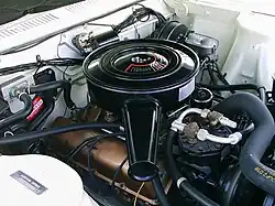 An entirely new family of V8 engines was offered. The six-cylinder was still available, but rarely ordered -only 355 were built. The base V8 was the 290 cu in (4.8 L) with a 2-barrel carburetor, while a pair of 343 cu in (5.6 L) V8s were optional: a 2-barrel that ran on regular-fuel, as well as a high-compression (10.2:1) premium-fuel version with a 4-barrel carburetor and dual exhaust that produced 280 hp (209 kW; 284 PS) at 4800 rpm and 365 pound-feet (495 N⋅m) of torque at 3000 rpm. An entirely new four-link, trailing-arm rear suspension system was introduced eliminating the previous torque tube design.