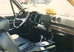 The second-generation Marlin did not have its own catalog, but was described within the large Ambassador sales brochure. The Ambassador's standard features and options also came on the Marlin. The interiors continued to offer premium materials and fittings, including wood-grain trim, and were the same as on the Ambassador 990 and DPL two-door hardtop models (with the exception of the "Custom" package that had two matching pillows) that "rival more expensive cars for luxury and quality, yet are durable enough to take years of normal wear."[45] Many Marlins were ordered with the reclining buckets seats that not only featured a center armrest between them (with a center cushion for a third occupant or a floor console with gear selector), but also a foldaway center armrest for the rear seat. The interior design was new and featured a safety-oriented dashboard with the instruments and controls grouped in front of the driver, while the rest of the dash was pushed forward and away from the passengers. Protruding knobs and controls were eliminated from any area that the passenger or driver could strike them. The steering wheel was smaller than used before and the column was now designed to collapse under impact. A new lane change feature was made standard for the turn signal.[46]