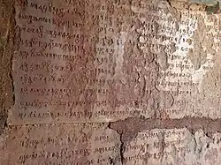 The inscription, first reported in 1982-83, was mentioned by Hans T. Bakker in 1989.[3] Bakker published a critical reading in 1993 with Harunaga Isaacson.[4] Further improvements were published in 1997.[5]