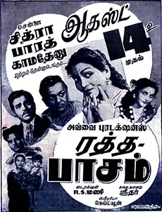 Ratha Paasam (transl. Blood affection) is a 1954 Indian Tamil-language drama film directed by R. S. Mani, written by C. V. Sridhar and produced by T. K. Muthusamy. The film stars T. K. Shanmugam, T. K. Bhagavathi, Anjali Devi, M. S. Draupadi, T. S. Balaiah and N. R. Vidyavathi. It is based on Sridhar's play of the same name. The film was released on 14 August 1954, became a commercial success, and was later remade in Hindi as Bhai-Bhai (1956).