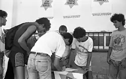 Ratz members in Herzliya solicting signatures for a petition against racism in 1984