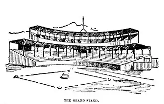 Opened in 1865 as a skating center, the park was adapted for baseball use in 1867.[3] Known until 1885 as Union Park,[3] the stadium had an early capacity of 2,500,[2] and was later expanded with wooden grandstands to allow up to 17,000 spectators.[4] After the Alleghenys moved a few blocks south in 1890, the main tenant became the Allegheny Athletic Association, and the grounds would eventually be referred to as 3A Park.[b] After the turn of the 20th century, it was converted to a velodrome called the Coliseum.