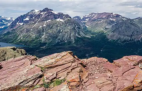 Like other mountains in Glacier National Park, it is composed of sedimentary rock laid down during the Precambrian to Jurassic periods. Formed in shallow seas, this sedimentary rock was initially uplifted beginning 170 million years ago when the Lewis Overthrust fault pushed an enormous slab of precambrian rocks 3 mi (4.8 km) thick, 50 miles (80 km) wide and 160 miles (260 km) long over younger rock of the cretaceous period.[6]