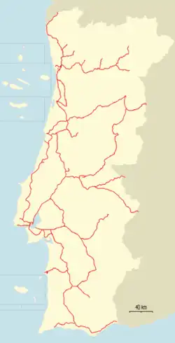 The Linha do Sul, at 274 km was the principal main line in the south of the country, but it terminated short of Lisbon on the south side of the river Tagus (Tejo in Portuguese) but it received a considerable improvement when it was extended from Pinhal Novo to Lisbon over the Ponte 25 de Abril, which was provided with an additional railway deck.