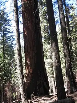 Redwood Mountain Grove is the largest grove of giant sequoia (Sequoiadendron giganteum) trees on earth.[1] It is located in Kings Canyon National Park and Giant Sequoia National Monument on the western slope of California's Sierra Nevada. The grove contains the world's tallest giant sequoia (95 metres (312 ft)).[2] The Hart Tree and Roosevelt Tree grow in the grove and are two of the 25 largest trees by volume in the world. The largest tree is the General Sherman Tree in the Giant Forest grove to the southeast.