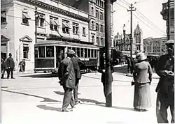 When introduced in 1911 four vehicles ran on a 10-kilometre (6.2 mi) route on 11th Street.[1][2] By 1913 the system had been expanded its fleet to 34 vehicles, and had added new routes on almost 30 kilometres (19 mi) of track.[4] Non-passenger vehicles used system to deliver coal and pick up trash.