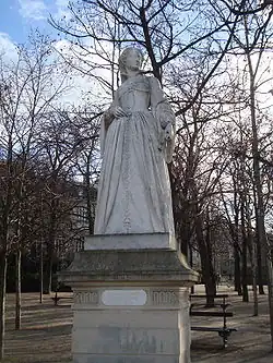 The Queens of France and Famous Women (Reines de France et Femmes illustres) is a group of sculptures in the Jardin du Luxembourg in Paris. It consists of 20 marble sculptures arranged around a large pond in front of the Palais du Luxembourg. Louis-Philippe I chose the women to be portrayed and most of the sculptures were commissioned around 1843, for around 12,000 francs each, and generally exhibited in the Paris Salons of 1847 or 1848.[1]