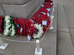 The giving of flowers in memory of lives lost at The Cenotaph | |