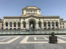 | The building houses the History Museum of Armenia and the National Gallery of Armenia. Construction began in the 1950s with the National Gallery building being completed in 1977.[2][34] It was designed by Mark Grigorian and Eduard Sarapian.[2] A small portion of the ensemble, the Arno Babajanyan Concert Hall, dates back to 1916.[2] | |