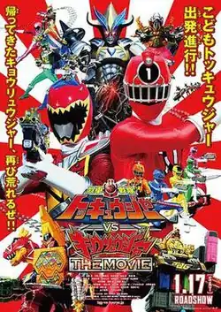 Ressha Sentai ToQger vs. Kyoryuger: The Movie (烈車戦隊トッキュウジャーVSキョウリュウジャー THE MOVIE, Ressha Sentai Tokkyūjā Tai Kyōryūjā Za Mūbī) is a 2015 Japanese film, featuring a crossover between the casts and characters of the Super Sentai television series Ressha Sentai ToQger and Zyuden Sentai Kyoryuger, including the debut appearance of the main cast of Shuriken Sentai Ninninger. Kyaeen's Hiroyuki Amano guest stars.[1][2] It was released nationally in Japan on January 17, 2015.