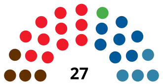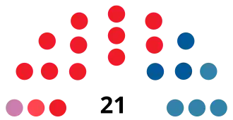 | Parties and alliances | Popular vote | Councillors | ||||