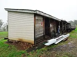 At the time of the QPF's takeover of Rewan in mid-1909, some improvements were already on site. These included a 5-room, iron-bark slab stockman's hut, suffering from white ant attack, and other out-house buildings, which were "rough and not considered of any value and should be pulled down".[34] A good stockyard was sited on a sand ridge behind the stockman's hut, which, after repair, would meet the stud's requirements for some years. Fencing consisted of about 25 miles (40 km) of outer boundaries and two horse paddocks, which were in a poor state of repair.[34][1]