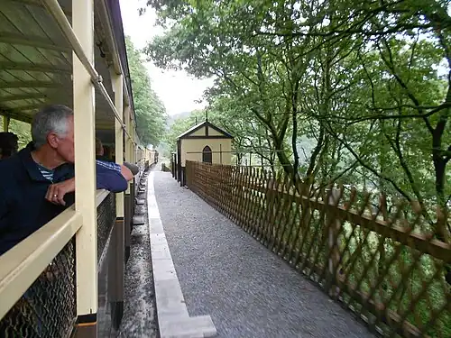 Rheidol Falls railway station is a railway station serving Rheidol Falls in Ceredigion in Mid-Wales. It is an intermediate station and request stop on the preserved narrow gauge 1 ft 11¾ in (603 mm) Vale of Rheidol Railway. This is one of the two stations of the railway, along with Rhiwfron, which has no road access.[1]