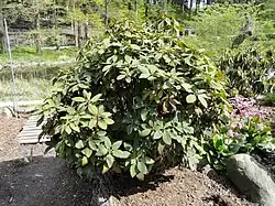 Rhododendron sikangense (川西杜鹃) is a rhododendron species native to western Sichuan and northeastern Yunnan in China (the area of the former province of Sikang for which it is named), where it grows at altitudes of 2,800–4,500 m (9,200–14,800 ft). It is a shrub or small tree that grows to 3–5 m (9.8–16.4 ft) in height, with leathery leaves that are oblong-elliptic or elliptic-lanceolate, 7–12 by 2.5–5.5 cm in size. The flowers are white, purple, or pink, with purple flecks.