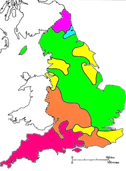 [T]he only areas of England... for which we have no evidence of rhoticity in the mid-nineteenth century lie in two separate corridors. The first runs south from the North Riding of Yorkshire through the Vale of York into north and central Lincolnshire, nearly all of Nottinghamshire, and adjacent areas of Derbyshire, Leicestershire, and Staffordshire. The second includes all of Norfolk, western Suffolk and Essex, eastern Cambridgeshire and Hertfordshire, Middlesex, and northern Surrey and Kent.[17]