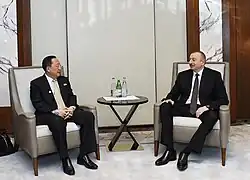 Ri with President Ilham Aliyev of Azerbaijan in 2018