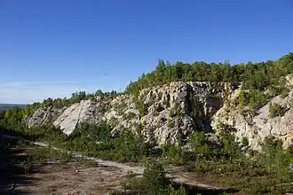 The park sits on top of a long tall and narrow ridge of quartzite that rises from the relatively flat central Wisconsin plain. The quartzite ridge dates back to the Penokean orogeny ~1.8 billion years ago, before this the quartzite was a large sandstone deposit on the edge of a shallow sea. The volcanic activity that resulted from the orogeny metamorphosed the sandstone into the present-day quartzite.[2] The resulting quartzite is hard and much more resistant to erosion than the surrounding rock and over the following millennia the softer surrounding rock eroded revealing the present day ridge.