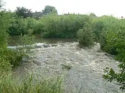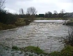 Flows on the Savick Brook vary considerably, from as little as 110 cubic feet per minute (50 L/s) up to 74,000 cubic feet per minute (35 m3/s). In order to accommodate these flows, weirs which are up to 100 feet (30 m) wide were required at the locks, and the bypass channels generally use the original course of the brook.[15] In order to allow fish to continue to move along the watercourse, fish passes would be built into the weirs. The Environment Agency raised concerns about water quality, but these were withdrawn in March 1999 after North West Water announced that they would soon be building a new interceptor sewer to run close to the Savick Brook, and the Trust agreed to make the channel slightly narrower, to improve flow speeds.[16] When originally conceived, the navigation would have had eight locks, numbered 1 to 8 from the Ribble upwards. Lock 2A was added, to ensure that the level of the pound above lock 2 did not compromise land drainage in the locality.[15] The locks were subsequently renumbered 1 to 9 from the Lancaster Canal downwards, in order to follow the convention used on the Glasson Dock branch. (Care should be taken when reading source documents on the construction, which use the old order).[17]