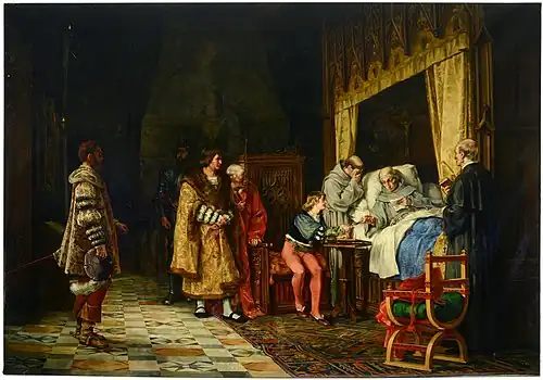 Upon returning to Madrid, he became a regular participant in the National Exhibition of Fine Arts, where he was awarded Second Class prizes for "The Death of Caesar' in 1876 and "A Message from Carlos I to Cardinal Cisneros" in 1877. The latter work was also presented at the Exposition Universelle (1878) in Paris.