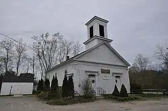 The Rice City Historic District is a historic district in Coventry, Rhode Island. It encompasses the 19th-century village of Rice City, extending along Plainfield Pike (Rhode Island Route 14) for several miles between Sisson Road and Gibson Hill Road in the northwestern part of Coventry. The main village center is at the junction of the Pike and Vaughn Hollow Road, and there is a former industrial and commercial center at Fairbank's Corner, the junction with Flat River Road (Rhode Island Route 117). The architecture of the district is predominantly rural and residential, with Greek Revival and Federal style housing predominating. Rice City village is dominated by Rice Tavern (built 1804), which used to serve travelers on their way to Connecticut, as well as the Rice City Church (1846), the Democrat Schoolhouse, and the Obadiah Potter House (1846), all a short way up Vaughn Hill Road. At the western edge of the district, the modern Pike alignment diverges from the historical one at Gibson Hill Road, where the foundational remnants of agricultural settlements may be found.[2]