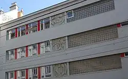 The listed concrete relief (Hauszeichen, Drei Betonreliefs) in Josefstädter Straße 93-97 in Wien-Josefstadt