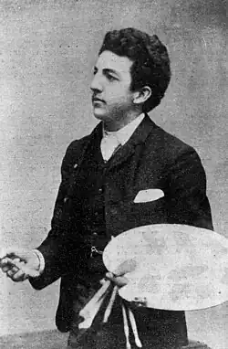 In April 1891, at the age of 22, Richard departed Brisbane with his mother and brother to accompany George Randall on his third tour to England.[9] While there, Richard furthered his art studies and applied to enter a well known art school run by Professor Hubert von Herkomer at Bushey, Hertfordshire. In December 1892 he was accepted into the Herkomer School and spent the next few years there, eventually earning a free scholarship and life membership. In 1895 Richard Randall attained his highest commendation, when one of his watercolour paintings, entitled "The Old Mill", was accepted and exhibited by the Royal Academy of Arts.[1][10]