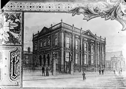While working on the design of Mynydd Seion chapel, Abergele in 1867, he came into contact with David Roberts & Co Company, Liverpool. The company were land surveyors and became dominant in Liverpool's housebuilding industry.[5] Through his collaboration with David Roberts, Owens designed over 10,000 terraced houses in the city of Liverpool, particularly those in the Toxteth area now commonly known as the Welsh Streets,[6] as many of the streets were named after Welsh towns and villages such as Voelas Street, Rhiwlas Street and Powis Street.[7] Ringo Starr was born in one of the Welsh Streets, in 9 Madryn Street and attended school in Pengwern Street. Owens also designed Roberts' corporate headquarters, Westminster Buildings, on Dale Street in the city.[5]