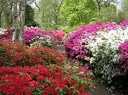 Between 1833 and 1842 the Petersham Lodge estate, and then part of Sudbrook Park, were incorporated into Richmond Park. Terrace Walk was created from Richmond Gate to Pembroke Lodge.[87] The Russell School was built near Petersham Gate in 1851.[88] Between 1855 and 1861, new drainage improvements were constructed, including drinking points for deer.[89] In 1867 and 1876 fallow deer from the park were sent to New Zealand to help build up stocks – the first fallow deer introduced to that country.[90][91] In or around 1870, the Inns of Court Rifle Volunteers were using an area near Bog Gate as a drill ground.[89] Giuseppe Garibaldi, Italian general and politician, visited Lord John Russell at Pembroke Lodge in 1864,[92] as did the Shah of Persia, Naser al-Din Shah Qajar in 1873. He was the first modern Iranian monarch to visit Europe.[92]