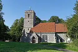 All Saints' Church, Rickling, a Grade I listed building,[9] is a 13th-century flint church, although the nave's unusual proportions may indicate a pre-conquest date. The chancel, south aisle and west tower were built in 1340. There were later alterations in the 15th and 16th centuries, with further additions and restoration in the 19th century. Significant features include the 14th-century chancel screen and pulpit.[10][11]