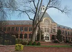 The campus includes one central building, which, along with the original gym, was completed in 1919 at a total cost of $285,000 (equivalent to $5.2 million in 2024). The building features brick walls, a slate roof and other stone features.[5] The building was planned to be opened at an earlier date but it was postponed because of World War I.[6] The building was designed by the architectural firm of Tracy and Swartwout, which also designed the Missouri State Capitol building.[7]
