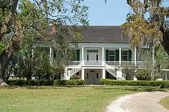 Rienzi plantation house is located directly across Bayou Lafourche from the town of Thibodaux. Despite the proximity of a modern shopping center, the house enjoys a historic setting due to the large live oaks on the property.[2] Two of the oaks are registered with the Live Oak Society.