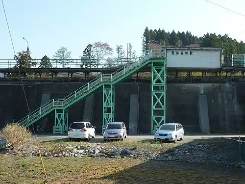 Rikuzen Akasaki Station (陸前赤崎駅, Rikuzen-Akasaki-eki) was a railway station on the Sanriku Railway Company’s Rias Line located in the city of Ōfunato, Iwate Prefecture, Japan. It is 3.7 rail kilometers from the terminus of the line at Sakari Station.