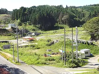 • "JR気仙沼線 【前面展望 4】 本吉⇒歌津" (video). YouTube.com. Archived from the original on 2021-12-13. Retrieved 2011-04-26. video of a train trip from Motoyoshi Station to Utatsu Station in 2009, passing through Rikuzen-Koizumi Station, Kurauchi Station, and Rikuzen-Minato Station at around 02:35, 03:55, 05:17 minutes, respectively, without stopping. Satellite photos (e.g., in Google Maps) showed that large sections of track and railway bridges were severely affected or washed away by the 2011 tsunami. Motoyoshi Station was undamaged, Rikuzen-Koizumi Station was destroyed, Kurauchi Station was damaged, and Rikuzen-Minato Station was destroyed.