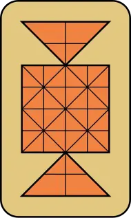 - Nine orang pieces are initially placed on the nine intersection points of the central square of the alquerque board, leaving 26 nodes unoccupied.