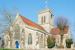 A church in Ringwood is mentioned in the Domesday Book of 1086.[9] It was rebuilt in the 13th century and survived until 1853, when it was completely knocked down and rebuilt.[9] The church contains a 15th-century monumental brass of John Prophete, Dean of Hereford and York.[9]