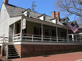 Originally, the large front porch was not part of the structure. It was added during the tavern phase of the property. No longer serving food and drink, guides provide visitors with a lively interpretation of eighteenth-century tavern life. The site is open daily.