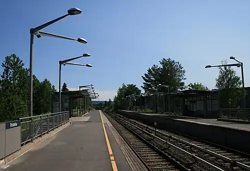 Risløkka is a station on Grorud Line (line 5) on the Oslo Metro. The station lies between Økern and Vollebekk and is situated 6.5 km from Stortinget. The station is among the original stations on the line and was opened ob 16 October 1966. Peer Qvam was the station's architect.[1]