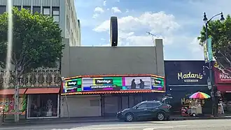 In 1974, the theater was taken over by the porno theater chain Pussycat Theaters, where Deep Throat would play for more than ten years, ending in 1989.[4] Additionally, from August 1977 to January 1978, the theater's neighbor housed Los Angeles's first punk rock club in its basement, with a secondary access point through a staircase from this theatre.[6]