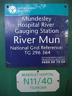 Gauging station on the River Mun at Mundesley Hospital.