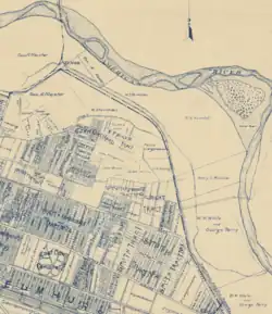 In the early 1900s, several wealthy businessmen owned most of what would become River Park. George A. Meister, a dairy executive and bank director, acquired most of what had been Smith's Gardens.[5] H. Steinman, a jewelry store owner, owned land upriver from Meister. William S. Kendall, the president of a collection agency and owner of many ranches and orchards throughout Sacramento and the San Joaquin valleys, owned about 145 acres upriver from Steinman.[6] Henry Smith Moddison operated an orchard and farm upriver from Kendall.[7]