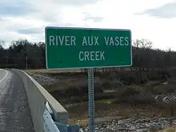River aux Vases Creek sign at Highway 61